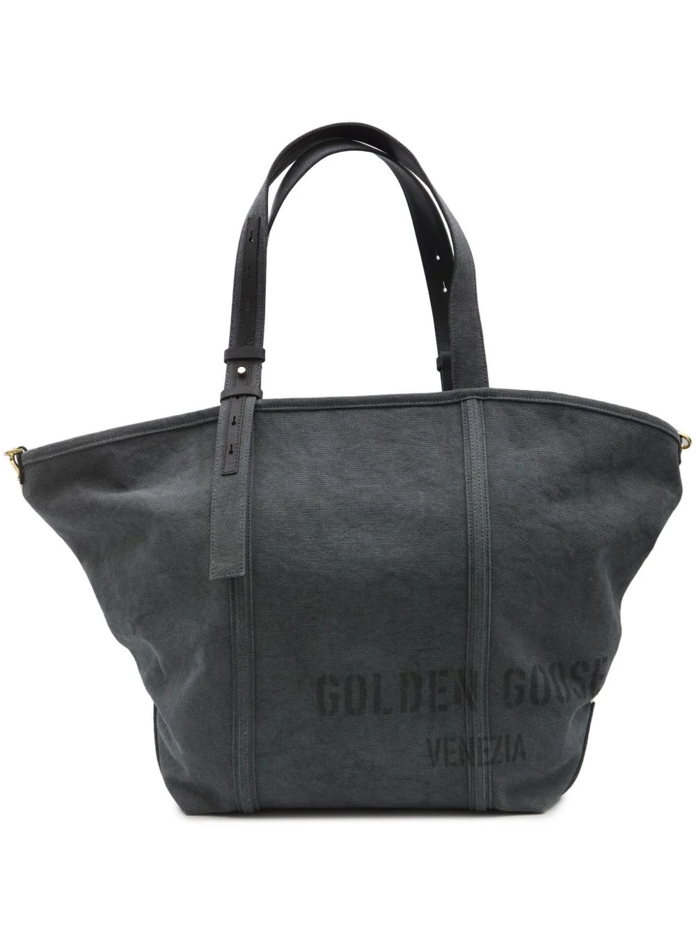 logo print shopping bag Highlights - Anthracite grey - Two top handles - Detachable shoulder strap - Main compartment Made in Italy Composition Outer: Calf Leather 100%, Cotton 100% SIZE & FIT Measurement DEPTH 6.29 in(16 cm) HEIGHT 23.62 in(60 cm) WIDTH 13.38 in(34 cm)