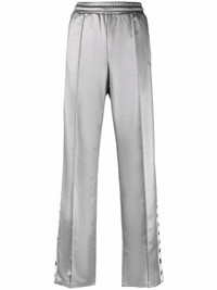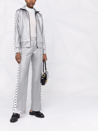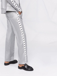 logo-tape straight-leg trousers Instantly recognisable by the star-motif running along the side of the leg, these Golden Goose trousers blend relaxed style with the brand's signature tailoring-inspired approach. This iteration features a creative, metallic-effect finish. Highlights - Grey - Cotton - Elasticated waistband - Metallic finish - Side stripe detailing - Logo-tape detailing - Straight leg - Pressed crease Made in Italy Composition Lining: Cotton 100% Outer: Polyester 100% SIZE & FIT Model measurements Height 5 ft 11 in(1.8 m) Bust/Chest 31.49 in(80 cm) Hips 36.61 in(93 cm) Waist 24.4 in(62 cm) FittingInformation This piece fits true to size. We recommend you get your regular size Designed to be fitted at the waist and hips, loose over the leg Made with a mid-weight fabric Washing instructions Machine Wash