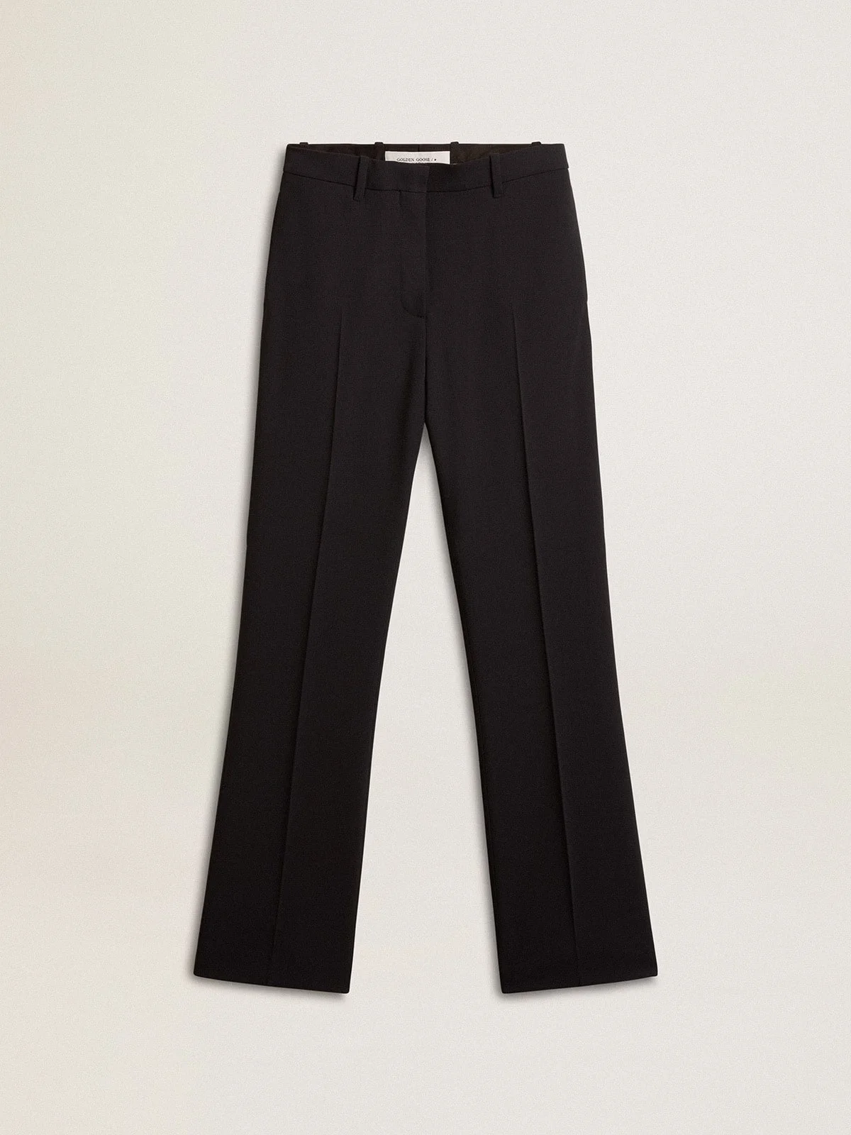 A love story to our home, Marghera. Where everything began. Our latest collection reflects the spirit of our birthplace, its contrasts, industrial soul, and manufacturing landscapes, weaving together inspirations from both the vibrant energy of workwear and the refined essence of traditional tailoring. In a black color, these wool-blend women’s pants feature a loose-fit straight leg and two appliqued little stars on the back. DETAILS Item No. GWP01894.P001619.50866 - Journey Collection - Color: black - Double star on the back - Loose fit - Straight leg - Main material: 70% viscose, 30% wool - Pocket lining: 100% cotton - Made in Italy The model is 177 cm tall and is wearing a size 40.