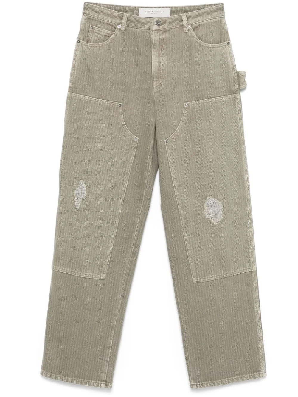 Marley Painter jeans Highlights - Desert sage green - Cotton blend - Pinstripe pattern - Bleached effect - Front button fastening - Low-rise - Rivet detailing - Belt loops - Classic five pockets - Patchwork detailing - Distressed finish - Signature star patch to the sides at the rear - Side loop tab - Two rear side slash pockets - Unlined - Straight leg Made in Italy Composition Outer: Cotton 58%, Polyester 42% Lining: Polyester 65%, Cotton 35% SIZE & FIT Model measurements Height 5 ft 9 in(1.75 m) Bust/Chest 31.88 in(81 cm) Hips 34.64 in(88 cm) Waist 24.01 in(61 cm) FittingInformation Designed for a straight-leg fit, these jeans allow for a close fit at the waist and an unrestricted and comfortable fit over the leg Sturdy and hard-wearing, this denim piece offers no stretch