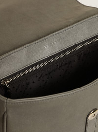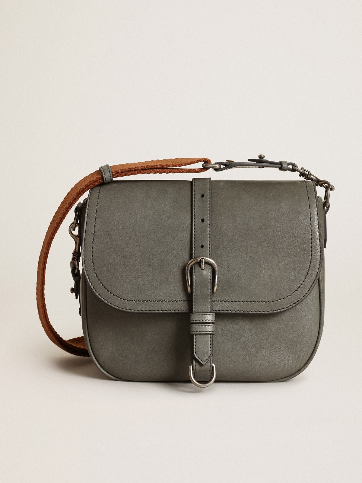 Medium Sally Bag in stone-gray leather with contrasting buckle and shoulder strap