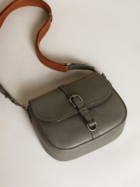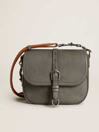 Equestrian soul and vintage finish. Our Sally Bag encapsulates all our values, from a love of craftsmanship to an extreme eye for detail. Made of stone-gray leather, this model features an aged silver buckle and contrasting rust-colored fabric shoulder strap. DETAILS Item No. 8050235342385 - Color: stone gray - Aged silver buckle fastening - Contrasting rust-colored fabric shoulder strap - Inside pocket with zip - Main material: 85% cow leather, 14% polyester, 1% polyamide - Lining: 100% polyamide - Dimensions: 22 x 27 x 8 - Length of shoulder strap: 115 cm