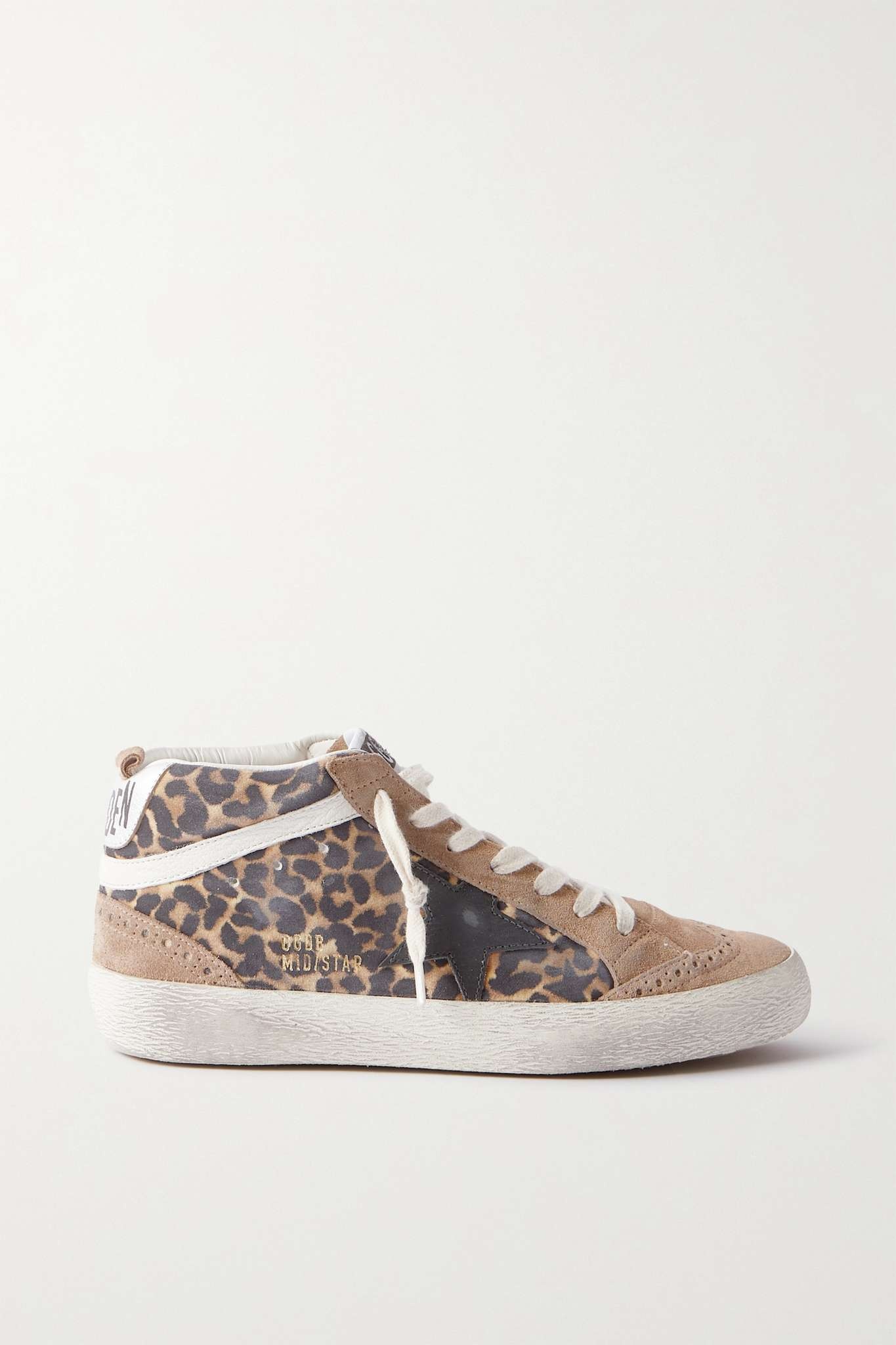 EDITORS'NOTES Golden Goose's 'Mid Star' sneakers are undeniably cool. This pair is made from panels of leopard-print and camel suede that's been hand-distressed by Venetian artisans to achieve the label's signature love-worn appearance. They wouldn't be complete without the leather star at the sides. SIZE & FIT - Fits true to size, take your normal size - Italian sizing DETAILS & CARE - Rubber sole measures approximately 30mm/ 1 inch - Leopard-print and camel suede (Cow), black and off-white leather (Calf) - Lace-up front