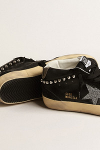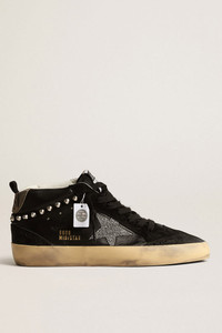 Uniquely elegant versatility: the Mid Star sneakers take a refined approach to their Eighties skate scene inspiration. This model, with a black nappa leather and suede upper, features a silver Swarovski micro-crystal star and a black suede flash with silver-colored studs. The dove-gray suede heel tab and black laces complete the look. DETAILS Item No. GWF00122.F004034.90368 - Black nappa leather and suede upper - Silver-colored Swarovski micro-crystal star - Dove-gray suede heel tab - Black suede flash with silver-colored studs - Black laces - Vintage finish - Upper: 50% cow leather, 47% sheepskin leather, 2% crystals, 1% textile polyurethane - Lining: 55% cotton, 37% cow leather, 5% polyester, 3% textile polyurethane - Sole: 100% rubber - Handmade - Made in Italy