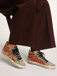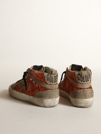 Mid Star in cinnamon glitter with ice-gray suede star and flash