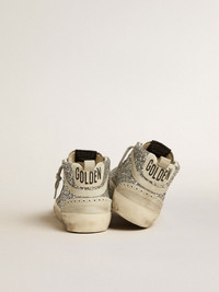 Uniquely elegant versatility: the Mid Star sneakers take a refined approach to their Nineties skate scene inspiration. This model with a silver glitter upper features an ice-gray suede star and flash. The ice-gray suede heel tab and inserts and ice-gray laces complete the look. DETAILS Item No. GWF00122.F005257.70136 - Silver glitter upper - Ice-gray suede star - Ice-gray suede heel tab - Ice-gray suede flash - Ice-gray suede inserts - Inserts with broguing - Ice-gray laces - Vintage finish - Upper: 98% cotton, 2% polyethylene terephthalate - Lining: 55% cotton, 31% textile polyurethane, 9% viscose, 5% polyester - Sole: 100% rubber - Handmade - Made in Italy