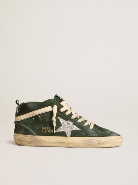 Uniquely elegant versatility: the Mid Star sneakers take a refined approach to their Nineties skate scene inspiration. This model with an upper in shades of black glitter features a black leather star and flash. The black leather heel tab, ice-gray suede toe and inserts, and black laces complete the look. DETAILS Item No. GWF00122.F005215.90184 - Black glitter upper - Black leather star - Black leather heel tab - Black leather flash - Black leather insert on the back - Ice-gray suede inserts - Inserts with broguing - Black laces - Vintage finish - Upper: 61% cow leather, 20% acrylic, 8% polyurethane, 6% polyvinyl, 3% cotton, 2% polyester - Lining: 45% cotton, 25% polyurethane, 18% cow leather, 7% viscose, 5% polyester - Sole: 100% rubber - Handmade - Made in Italy