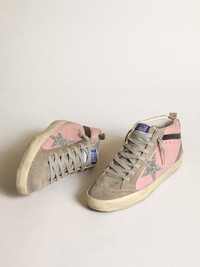 Uniquely elegant versatility: the Mid Star sneakers take a refined approach to their Eighties skate scene inspiration. These sneakers with a pink leather upper feature a silver glitter star and dove-gray suede inserts, including the tongue and heel tab. The black leather flash, broguing details and ice-gray laces complete the look. DETAILS Item No. GWF00122.F003370.81815 - Pink leather upper - Silver glitter star - Dove-gray suede heel tab - Dove-gray suede tongue - Black leather flash - Dove-gray suede inserts - Broguing details - Ice-gray laces - Vintage finish - Upper: 100% cow leather - Lining: 55% cotton, 45% cow leather - Sole: 100% rubber