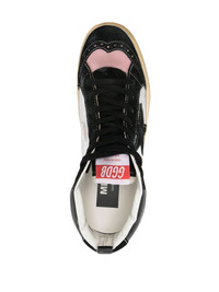 Mid Star WMNS "Black Silver Pink" sneakers Golden Goose combines streetwear influences with glamourous touches. Crafted from leather with a distressed effect, this Mid-Star pair is constructed in a panelled metallic finish. Highlights - Black - Silver-tone - Metallic finish - Distressed effect - Signature star patch to the sides - Logo patch at the tongue - Front lace-up fastening - Round toe - Flat rubber sole Made in Italy Composition Lining: Fabric 100%, Calf Leather 100% Outer: Calf Leather 100% Sole: Rubber 100% SIZE & FIT Measurement HEEL 1.18 in(3 cm) Sole height 0.98 in(2.5 cm)