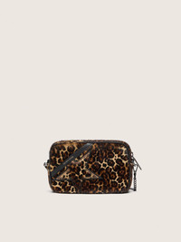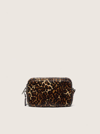 Vintage inspiration, metropolitan attitude. A versatile accessory that captures the classic design of camera bags and stands out thanks to its refined details. This model in animal-print pony skin features a tone-on-tone star. The black leather topstitching and ruthenium metal details complete the look. DETAILS Item No. 8058807118857 - Color: beige, brown and black - Tone-on-tone pony skin star on the front - Contrasting silver-colored logo on the front - Metallic details in silver-colored ruthenium - Zip fastening - External phone pocket - Inside pocket - Main material: 100% cow leather - Lining: 100% polyamide - Size: 16 x 10 x 6 cm - Length of shoulder strap: 115 cm
