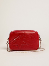 Vintage inspiration, metropolitan attitude. A versatile accessory that captures the classic design of camera bags and stands out thanks to its refined details – now also in a mini version. This model, in naplak-effect red patent leather, features a tone-on-tone star. The silver-colored shoulder chain with Dreaming lettering and the contrasting silver logo that decorates the front complete the look. DETAILS Item No. 8050235215795 - Color: ruby red - Ruby red patent leather star on the front - Contrasting silver logo on the front - Silver chain shoulder strap with Dreaming lettering - Inside pocket - Main material: 100% cow leather - Lining: 100% polyamide - Dimensions: 10 x 16 x 6 cm - Length of shoulder strap: 115 cm - Made in Italy