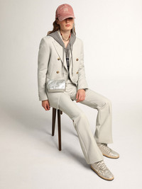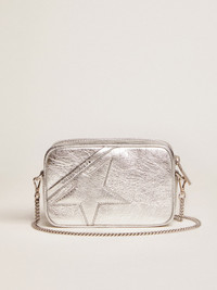 Women's Mini Star Bag in silver laminated leather with tone-on-tone star