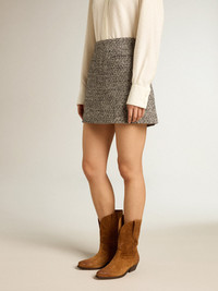 Miniskirt in black and white bouclé cotton