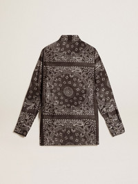 A unique, timeless collection that encapsulates the Golden Goose DNA, designed to remain with you every day, through thick and thin, come rain or shine. This anthracite-gray pajama shirt in fluid viscose features a paisley print and mother-of-pearl button fastening. The detachable white patch with a finely embroidered letter G in red adds the finishing touch. DETAILS Item No. GWP00819.P001257.60318 - Golden Collection - Color: anthracite gray - Paisley print - Double gold star on the back - Detachable white patch with embroidered red letter G - Regular fit - Long sleeves - Mother-of-pearl button fastening - Main material: 100% viscose - Made in Italy The model is 177 cm tall and is wearing a size S.