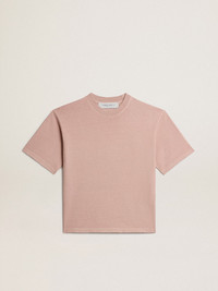 A unique, timeless collection that encapsulates the Golden Goose DNA, designed to remain with you every day, through thick and thin, come rain or shine. In powder-pink cotton with a distressed finish, this T-shirt with an Asian Market Exclusive fit features a raised reverse Golden logo on the back. DETAILS Item No. GWP01874.P001576.25235 - Color: powder pink - Reverse Golden logo on the back - Double gold star on the back - Boxy fit - Asian Market Exclusive - Short sleeves - Distressed finish - Main material: 100% cotton - Made in Italy The model is 183 cm tall and is wearing a size M.