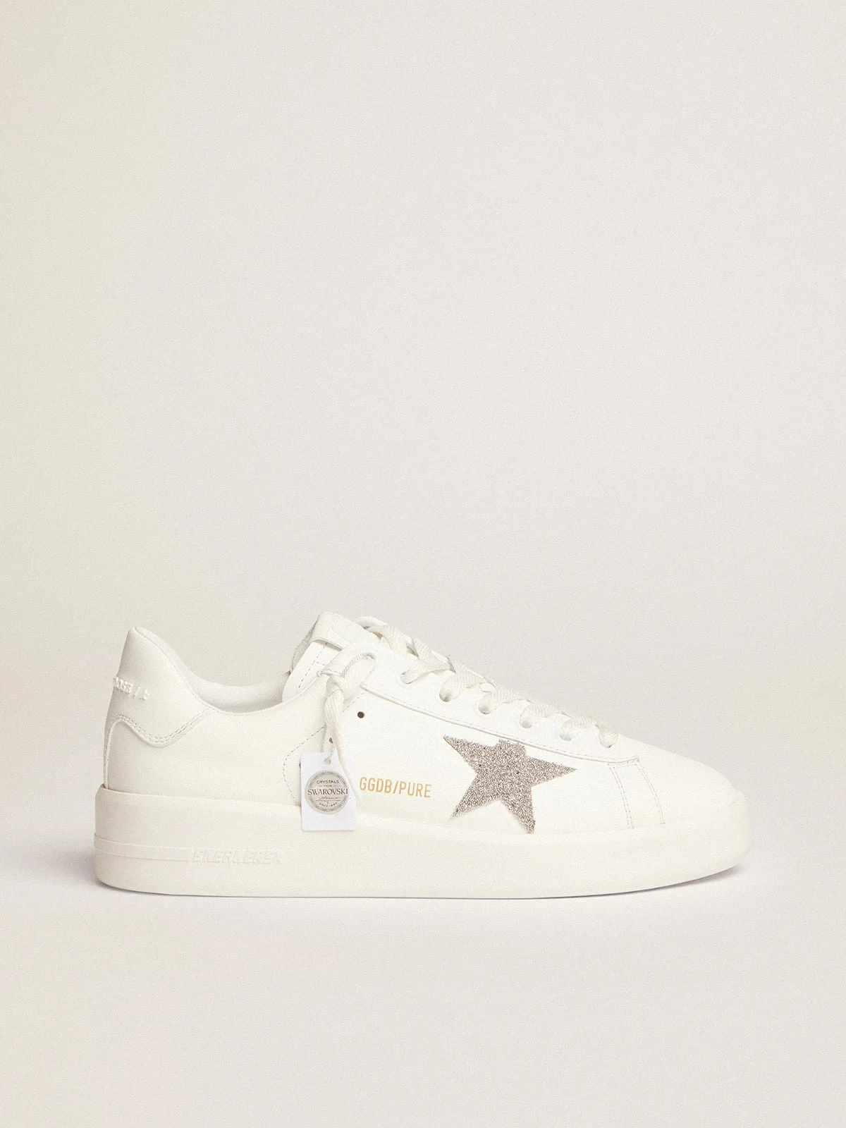When the minimalism of the shape meets the strength of the details: our Purestar sneakers combine an understated style with extreme comfort thanks to their shock-absorbing technology. This model in white leather is embellished with a star in silver-colored crystals. DETAILS Item No. GWF00197.F002789.80185 - Color: white - Silver-colored crystal star - White leather heel tab - White laces - Upper: 96% cow leather, 4% crystals - Lining: 86% cow leather, 14% cotton - Sole: 100% rubber - Handcrafted - Made in Italy