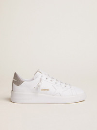 Purestar sneakers in white leather with tone-on-tone star and silver micro-glitter heel tab