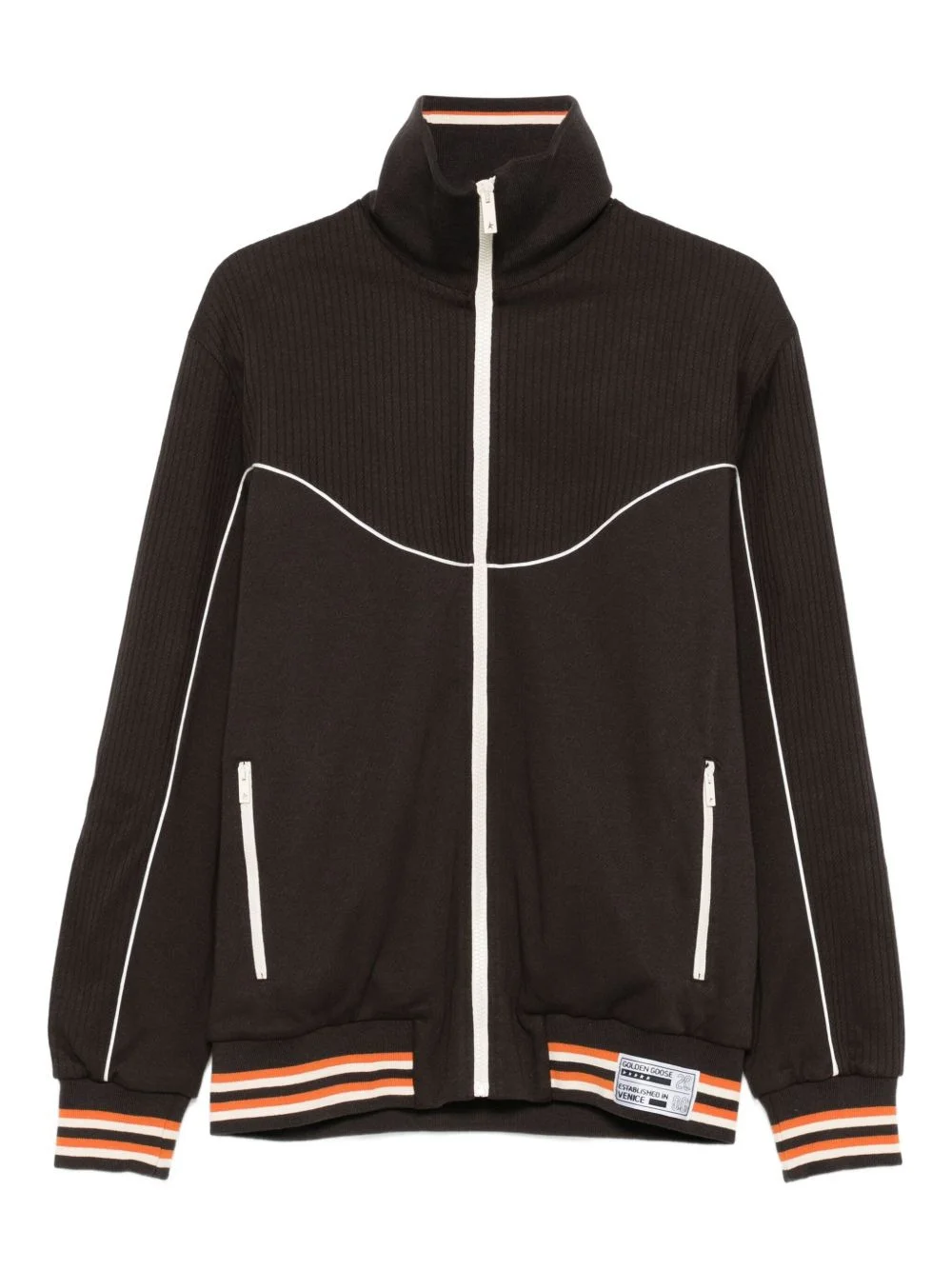 ribbed-panel zip-up jacket Highlights - Brown - Ribbed panels - Zip fastening - White stripes - Welt pockets Made in Italy Composition Lining: Cotton 100% Outer: Cotton 76%, Polyester 24% SIZE & FIT Model measurements Height 5 ft 11 in(1.8 m) Bust/Chest 32.67 in(83 cm) Hips 36.22 in(92 cm) Waist 24.4 in(62 cm) Washing instructions Machine Wash