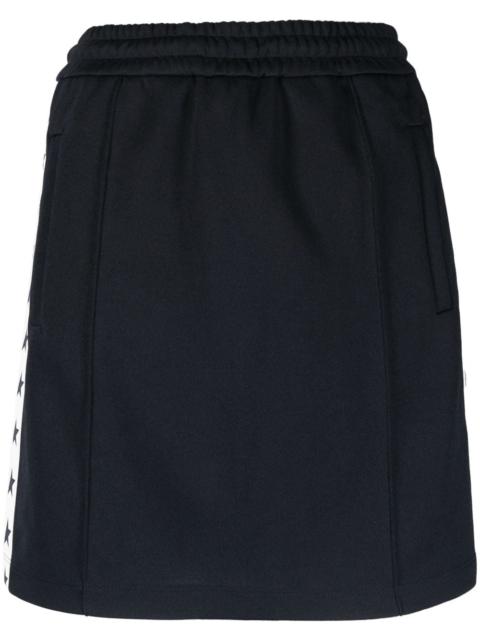 Rock Star side stripe skirt The star, a signature motif for Golden Goose, adorns the side of the Rock Star miniskirt in contrasting stripes. Made in Italy from heavyweight cotton, the design sits high at the waist with an elasticated band. Highlights - Wine red/white - Cotton - High-waisted - Elasticated waistband - Two side slit pockets - Side stripe detailing - Thigh-length - Piped-trim detailing - Thigh-length Made in Italy Composition Outer: Polyester 100% Lining: Cotton 100% SIZE & FIT Model measurements Height 5 ft 10 in(1.77 m) Bust/Chest 33.07 in(84 cm) Hips 37 in(94 cm) Waist 24.8 in(63 cm) FittingInformation This mini-length skirt is intended to be worn just below the waist The elasticated waist allows for a comfortable fit Made from a midweight non-stretch fabric, this piece offers minimal elasticity when worn This piece fits true to size – take your usual size Washing instructions Machine Wash