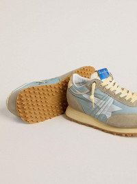 Track and field-inspired, with a Seventies flair. Day after day, our new Marathon sneakers are designed to keep you running after your dreams, paying homage to the marathon that is life. This women’s model features a nylon upper, a pastel blue star, a gold metallic nappa leather heel tab and a gray suede toe. The look is completed by white laces with a lived-in look and a starred outsole, to make a truly unique impression. DETAILS Item No. GWF00683.F007401.82963 - Light blue nylon upper - Pastel blue star - Gold metallic leather heel tab - Gray suede toe - White laces with a lived-in look - Upper: 49% polyamide, 38% cow leather, 5% textile polyurethane, 5% polyester, 3% sheepskin leather - Lining: 70% sheepskin leather, 20% polyester, 10% textile polyurethane - Sole: 100% rubber - Handmade - Made in Italy