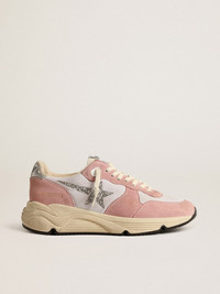 Urban style and a spirit of craftsmanship are combined in our Running Sole sneakers: the ideal companion for your metropolitan adventures. This model features an upper in gray mesh and old rose suede, accentuated with a silver glitter star. The silver metallic leather heel tab and beige laces add the finishing touches. DETAILS Item No. GWF00215.F004524.25648 - Gray mesh and old rose suede upper - Silver glitter star - Silver metallic leather heel tab - Beige laces - Vintage finish - Upper: 50% polyester, 42% cow leather, 4% polyamide, 2% polyethylene terephthalate, 2% cotton - Lining: 64% cotton, 22% cow leather, 11% polyester, 3% textile polyurethane - Sole: 100% rubber - Handmade - Made in Italy