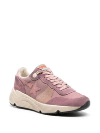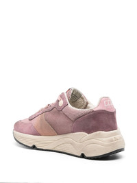 Running Sole lace-up sneakers These panelled sneakers by Golden Goose are crafted from pink suede. Boasting the label's signature distressed finish, they're detailed with logo-print laces and the hallmark star patch to the side. Highlights - Rose pink - Panelled design - Suede panels - Micro-mesh panels - Distressed finish - Signature one star logo - Logo patch at the tongue - Logo-print laces - Logo print to the side - Contrasting branded heel counter - Front lace-up fastening - Round toe - Branded insole - Chunky rubber sole Made in Italy Composition Suede 100% SIZE & FIT Measurement HEEL 1.96 in(5 cm) Sole height 0.78 in(2 cm)