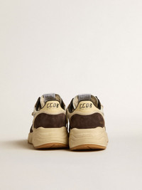 Urban style and a spirit of craftsmanship are combined in our Running Sole sneakers: the ideal companion for your metropolitan adventures. This model with a white nappa leather upper with brown suede inserts features a silver Swarovski micro-crystal star and a cream-colored leather heel tab. And the white laces with contrasting black logo and silver Swarovski micro-crystals add the finishing touch. DETAILS Item No. GWF00126.F005153.82496 - White nappa leather upper with brown suede inserts - Silver Swarovski crystal star - Cream leather heel tab - White laces with contrasting black logo and silver Swarovski micro-crystals - White stitching - Vintage finish - Upper: 51% sheepskin leather, 46% cow leather, 3% crystal - Lining: 49% cotton, 22% cow leather, 18% polyurethane, 6% polyester, 5% viscose - Sole: 100% rubber - Handmade - Made in Italy