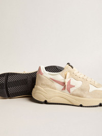 Women’s Running Sole in beige nylon with pink leather star and heel tab