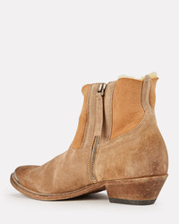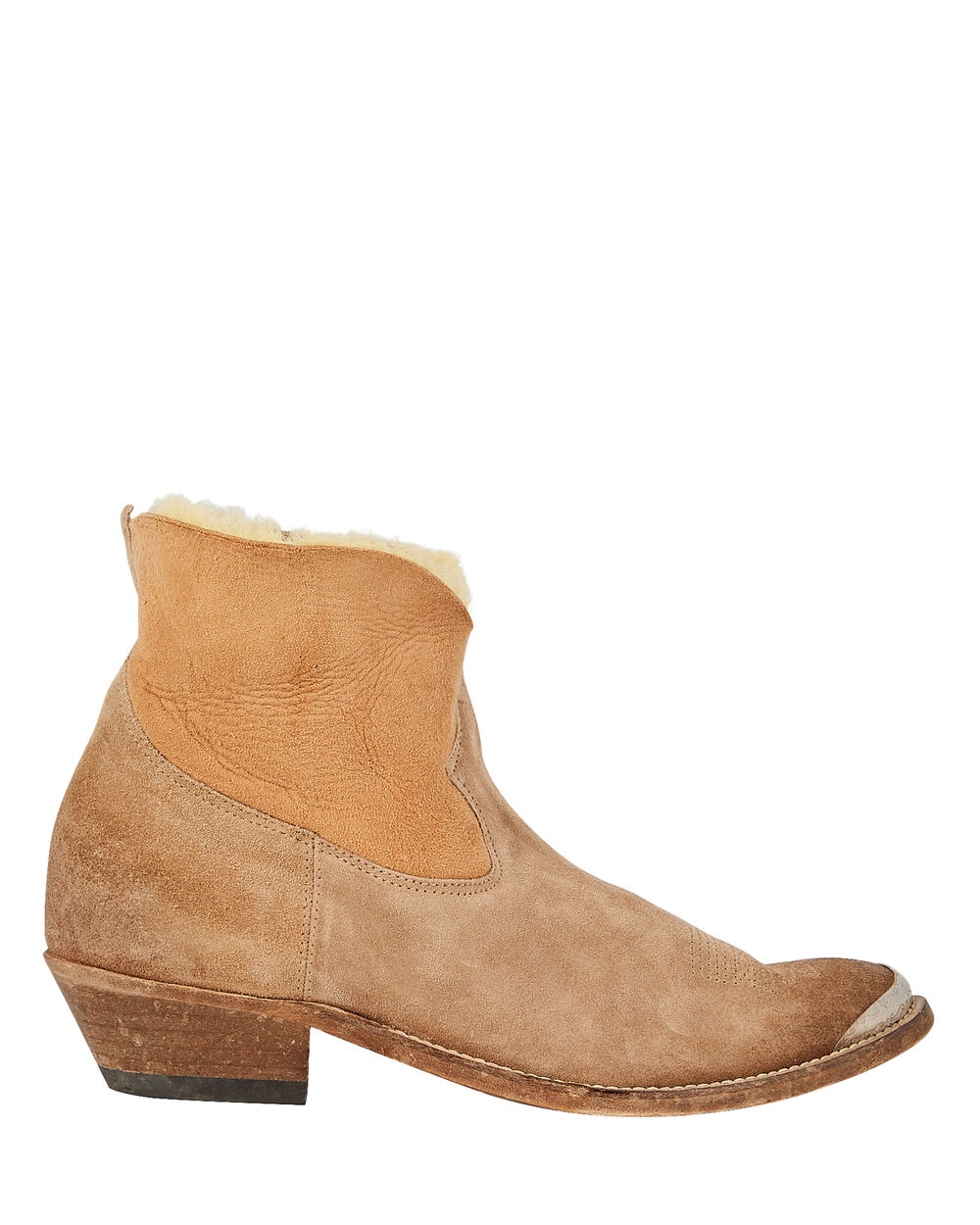 Stylish and pragmatic, Golden Goose's Young boots were expertly made in Italy from velvety beige suede with a cozy shearling lining. Spotlight the metal plaque and Western-inspired stithcing with cropped hems. Style Number: GWF00131.F003471.55502 Style Number: GWF00131.F003471.55502 - Composition: suede - Lining: shearling - Sole: leather - Side zip closure - Heel height: 1.7" - Made in Italy Item is listed in Italian sizing, please make note of accurate size conversions.