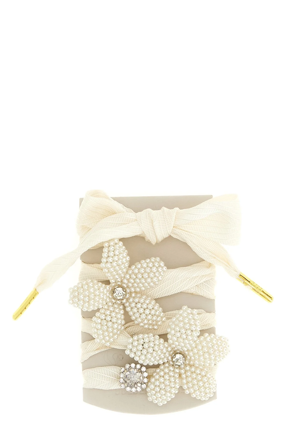 cod. GUZ00277Z0002601010010100 'Skin Sparkling' viscose shoelaces with geometric pattern decorated with floral charms of embroidered beads and metal and rhinestone eyelets. Color: White Size & Fit: One size Composition: 100% viscose Made in: India