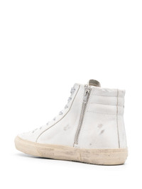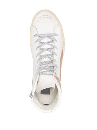 Slide hi-top sneakers Highlights - White/beige/silver-tone - Calf leather - Distressed finish - Panelled design - Suede panelling - Signature star patch to the sides - Logo stamp at side - Perforated logo detail - Lurex laces - Round toe - Front lace-up fastening - Side zip fastening - Ankle-length - French terry lining - Branded leather insole - Flat rubber sole Made in Italy Composition Leather 100% SIZE & FIT Measurement HEEL 1.18 in(3 cm) HEIGHT 3.93 in(10 cm) Sole height 0.59 in(1.5 cm)