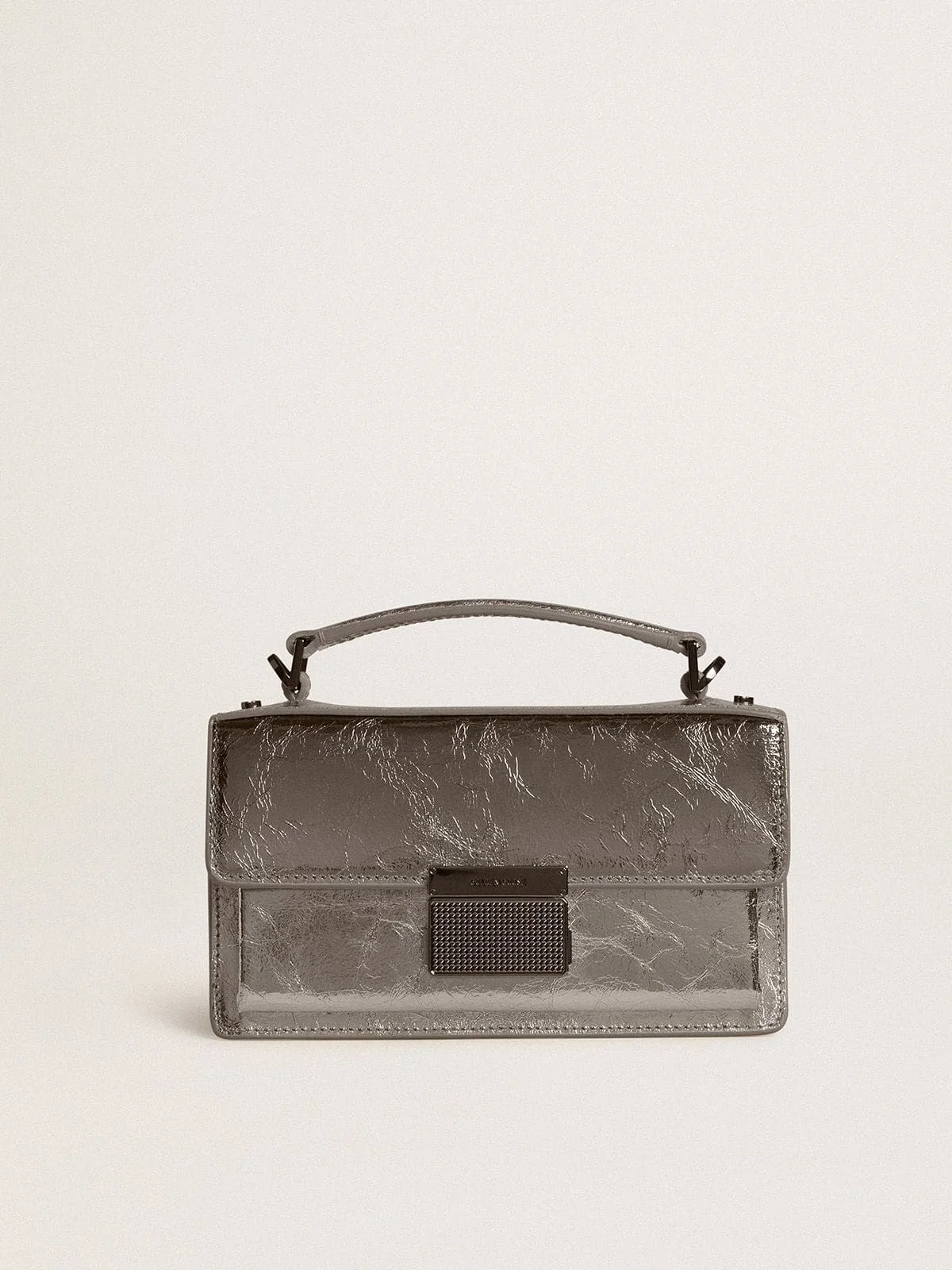 Small Venezia Bag in anthracite-gray metallic leather with black details