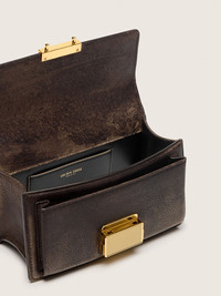 Functional yet sophisticated, our Venezia bag is a statement of Venetian elegance, inviting you to carry a piece of its soul wherever you go. In dark brown leather with a lived-in look, this small version of the bag features a double compartment, an internal welt pocket and gold-tone metal accents. The gold-colored metal buckle closure with a perforated texture completes the design. DETAILS Item No. 8058807030586 - Color: dark brown - Gold-tone buckle closure and side buttons - Double inside pocket - Inner card holder - Logo on the back - Adjustable shoulder strap with snap hook - Gold-tone metal accents - Main material: 100% cow leather - Lining: 100% cow leather - Size: 18 x 10 x 7.5 cm - Length of shoulder strap: 112 cm to fourth hole - Handmade - Made in Italy