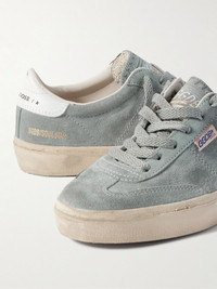 It takes years to achieve the authentic broken-in look that Golden Goose's sneakers have fresh out of the box. This 'Super-Soul' pair is made from gray suede panels and contrasting leather heels. Their rubber soles are lightly distressed with scratches and marks - the label calls them "perfect imperfections." Details & Care - Rubber sole measures approximately 25mm/ 1 inch - Gray suede, white leather - Lace-up front