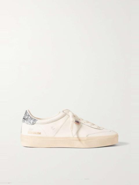 Soul-Star distressed leather-trimmed suede sneakers Gray
