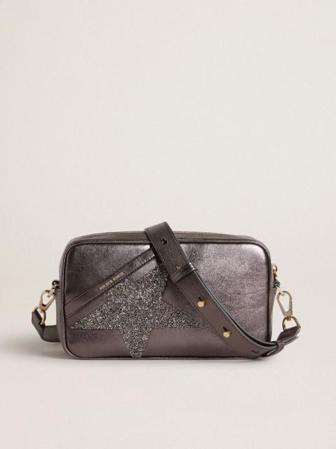 Vintage inspiration, metropolitan attitude. A versatile accessory that captures the classic design of camera bags and stands out thanks to its refined details. This model in wine-red leather features a tone-on-tone star. The contrasting gold logo that decorates the front completes the look. DETAILS Item No. 8050235736719 - Color: wine red - Tone-on-tone leather star on the front - Contrasting gold-colored logo on the front - Zip fastening - External phone pocket - Inside pocket - Main material: 100% goatskin - Lining: 100% polyester - Size: 15 x 23 x 7 cm - Length of shoulder strap: 115 cm