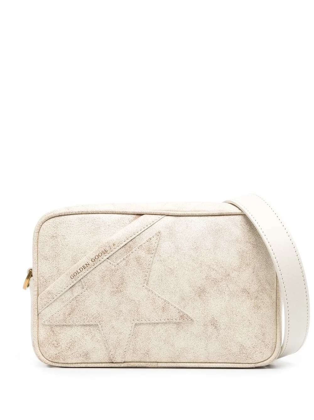 Star leather crossbody bag Golden Goose's Star crossbody bag is inspired by the brand's cult Super-Star sneakers. Crafted from leather with a distressed finish, this beige iteration is decorated with the iconic star motif at the front. Made in Italy Composition Outer: Calf Leather 100% SIZE & FIT Model measurements Height 5 ft 11 in(1.8 m) Bust/Chest 31.88 in(81 cm) Hips 35.03 in(89 cm) Waist 24.01 in(61 cm) Measurement DEPTH 2.75 in(7 cm) HEIGHT 5.11 in(13 cm) STRAP 18.5 in(47 cm) WIDTH 8.26 in(21 cm)