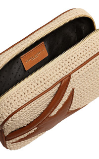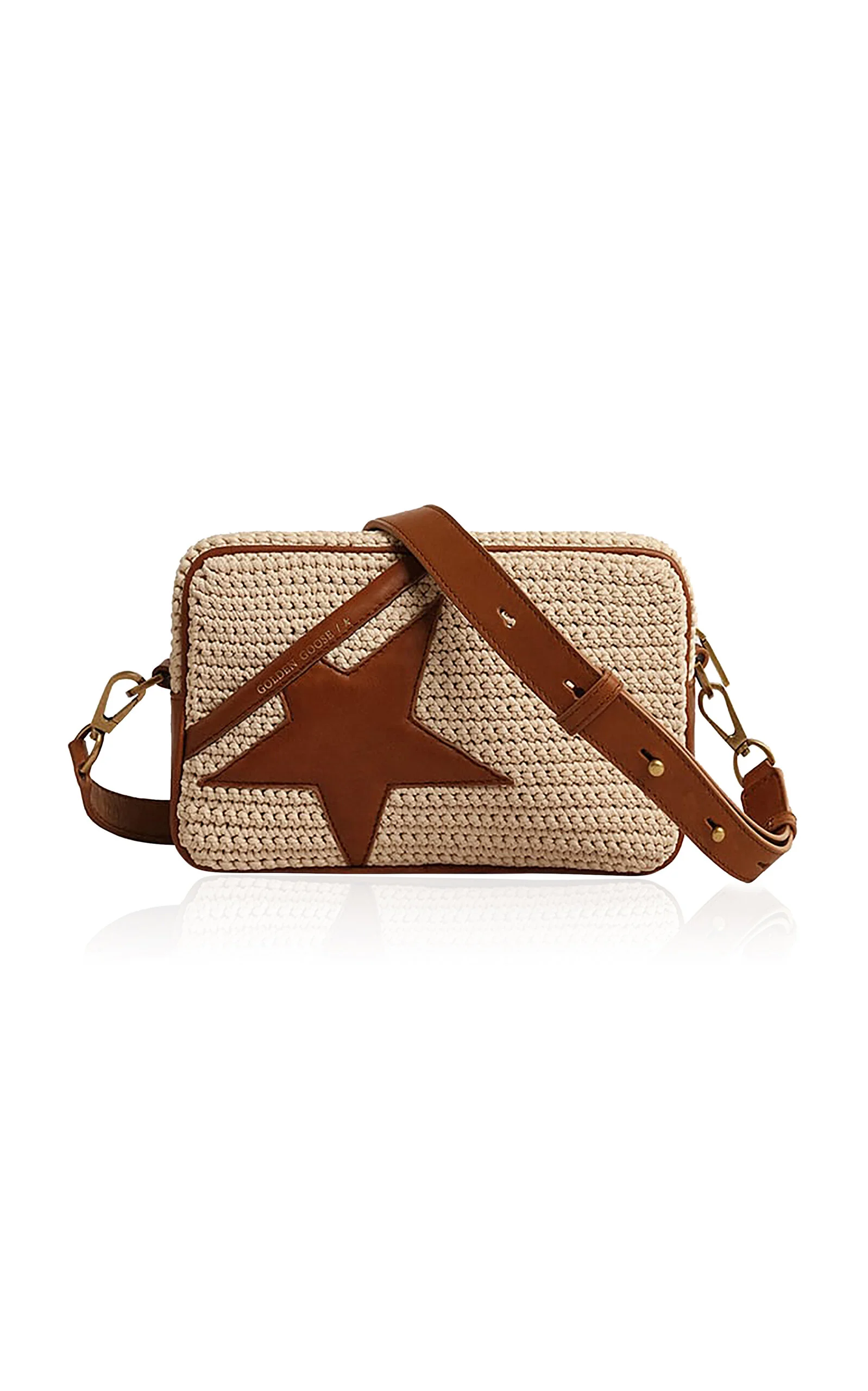 Alessandro Gallo and Francesa Rinaldo are the husband and wife duo behind Golden Goose, fusing fine Italian craftsmanship with cool, contemporary style. This crossbody bag is crafted from summery raffia detailed with the label's signature 'Star' stitch in leather. Fit with a secure zip across the front, this style opens to a pocketed interior sized to hold your daily essentials. PRODUCT DETAILS - Carry it as a clutch or add the adjustable shoulder strap to style crossbody - Zip fastening - Composition: raffia, leather - Made in Italy SIZE & FIT - This item measures approximately 5.5 x 8.75 x 2.25"