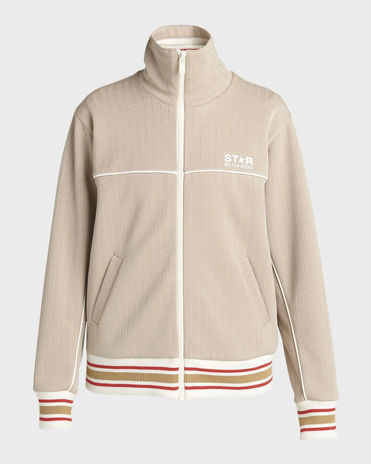 Golden Goose "Star" track jacket featuring a logo print in a technical cottonpoly fabrication Funnel neckline Long sleeves with banded cuffs Angled side pockets Easy fit Banded hem Zipfront Cotton Dry clean Imported
