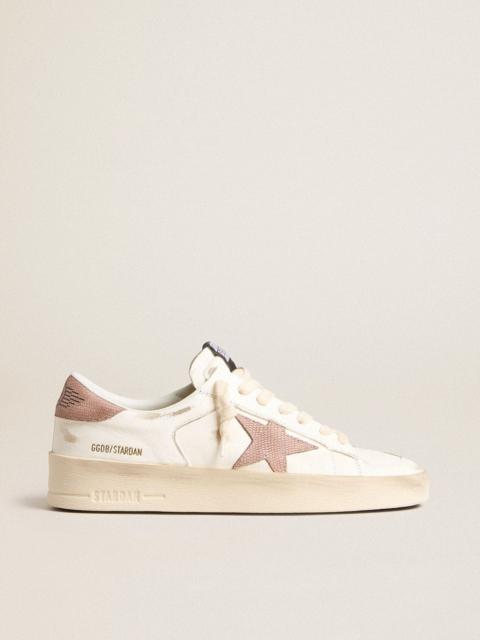 The glorious Nineties wrapped up in a sneaker. The Stardan sneakers pay homage to the basketball icons of that decade, while keeping an eye on the present. This version with a white nappa leather and pearl suede upper features a pink glitter star and heel tab. And white laces add the finishing touch. DETAILS Item No. GWF00667.F005976.10310 - White nappa leather and pearl suede upper - Pink glitter star - Pink glitter heel tab - White laces - Vintage finish - Upper: 52% sheepskin leather, 36% cow leather, 8% polyethylene terephthalate, 4% cotton - Lining: 43% cotton, 26% cow leather, 20% textile polyurethane, 6% polyester, 5% viscose - Sole: 100% rubber - Handmade - Made in Italy
