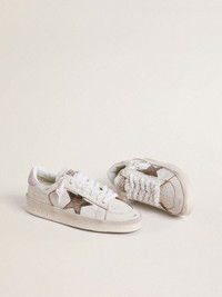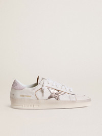 The glorious Nineties wrapped up in a sneaker. The Stardan sneakers pay homage to the basketball icons of that decade, while keeping an eye on the present. This version with a white nappa leather upper features a metallic silver leather star and pink suede heel tab. And white laces add the finishing touch. An extra double lace with which you can try new style combinations is included with this Stardan. DETAILS Item No. GWF00128.F007276.82942 - White nappa leather upper - Silver metallic leather star - Pink suede heel tab - White laces - Vintage finish - Extra Lace - Upper: 88% sheepskin leather, 12% cow leather - Lining: 42% cotton, 25% cow leather, 22% textile polyurethane, 6% viscose, 5% polyester - Sole: 100% rubber - Handmade - Made in Italy