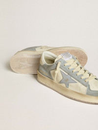 The glorious Nineties wrapped up in a sneaker. The Stardan sneakers pay homage to the basketball icons of that decade, while keeping an eye on the present. This version with a white nappa leather and powder-blue suede upper features a light blue leather star and white nappa leather heel tab. And white laces add the finishing touch. DETAILS Item No. GWF00333.F006541.50492 - White nappa leather and powder-blue suede upper - Light-blue leather star - White nappa leather heel tab - White nappa leather tongue - White laces - Vintage finish - Upper: 64% goatskin leather, 36% cow leather - Lining: 43% cotton, 26% cow leather, 20% textile polyurethane, 6% polyester, 5% viscose - Sole: 100% rubber - Handmade - Made in Italy