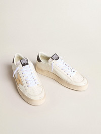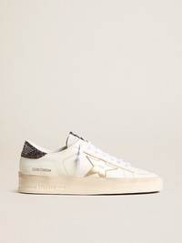 The glorious Nineties wrapped up in a sneaker. The Stardan sneakers pay homage to the basketball icons of that decade, while keeping an eye on the present. This version with a white leather upper features a gold metallic leather star and black heel tab with glitter. And white laces add the finishing touch. DETAILS Item No. GWF00333.F006217.11938 - Color: white - Gold metallic leather star - Black leather heel tab with glitter and white logo - White laces - Vintage finish - Upper: 87% cow leather, 5% polyethylene terephthalate, 3% polyester, 3% polyurethane, 2% cotton - Lining: 43% cotton, 26% cow leather, 20% textile polyurethane, 6% polyester, 5% viscose - Sole: 100% rubber - Handmade - Made in Italy