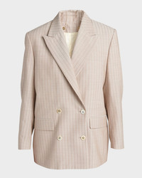 Golden Goose blazer featuring a doublebreasted front in striped jacquard Peak lapels Long sleeves with button cuffs Hip flap pockets Drawstring waist Boyfriend fit Vented back Buttonfront Polyester Dry clean Imported