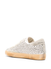 Super Star crystal-embellished sneakers Highlights - White - Calf leather - Crystal embellishment - Contrasting branded heel counter - Signature star patch to the sides - Round toe - Front lace-up fastening - Branded insole - Flat rubber sole Made in Italy Composition Leather 100% SIZE & FIT Measurement HEEL 1.18 in(3 cm)