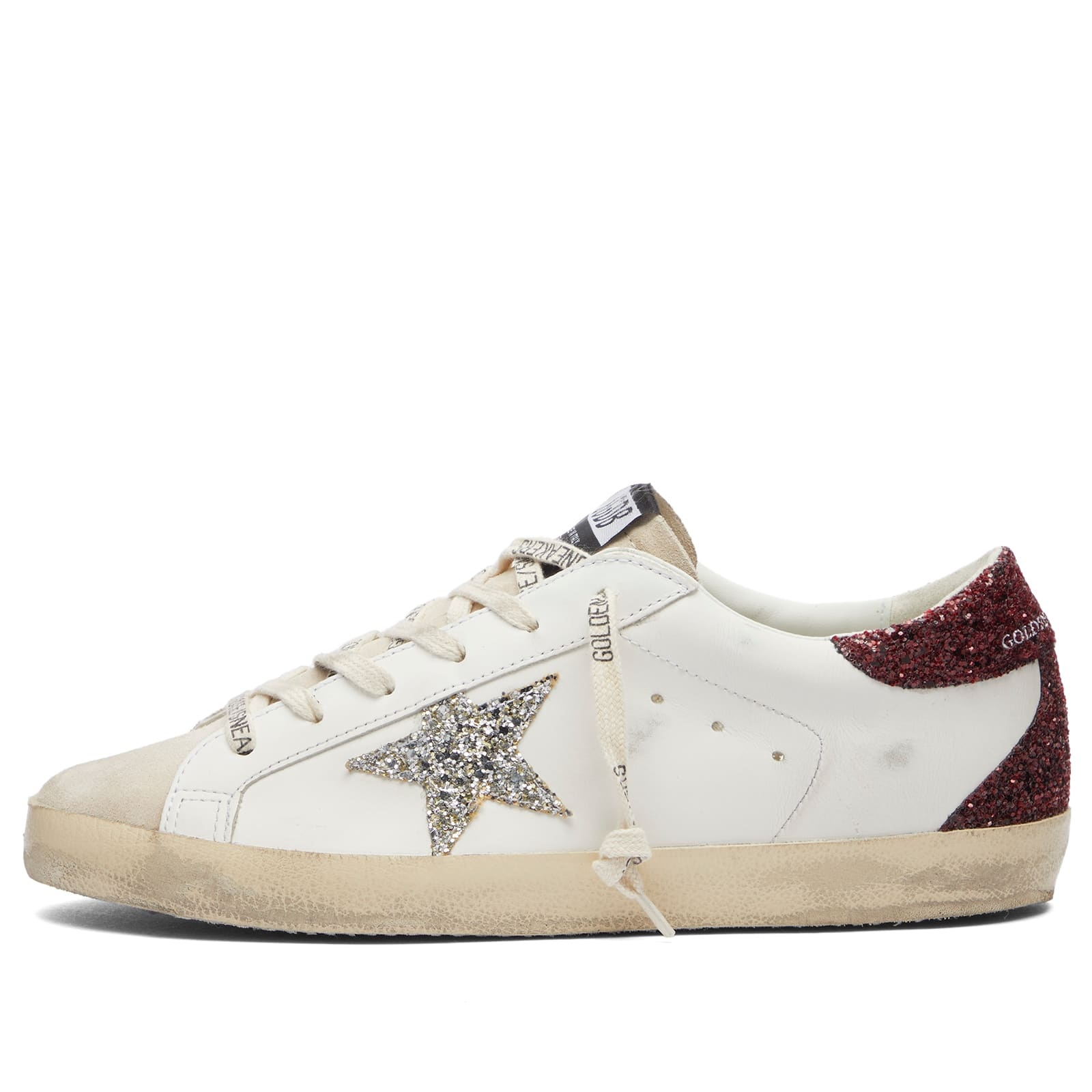 American brand Golden Goose is known for its vintage and 'well-worn' approach to sneaker design. The Super Star Sneakers are given the same treatment with a twist - the signature star patch and heel tab are covered in glitter. Count us in. - Calf Leather Uppers - Rubber Soles - Distressed Finish - Glitter Detail - Lace Up Closure - Branding Throughout - Made in Italy