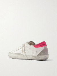 Each variation of Golden Goose's iconic 'Super-Star' sneakers is as cool as the last. This pair is made from smooth leather and suede that are distressed by hand to look worn-in from the very first wear. They feature a metallic version of the signature star appliques and have contrasting heel tabs. There's no shortage of ways to wear them. Size & Fit - Fits true to size, take your normal size - Only available in full sizes, go down to the nearest whole size if you take a half size - Italian sizing Details & Care - Rubber sole measures approximately 10mm/ 0.5 inches - Off-white and orange suede (Cow), silver and off-white leather - Lace-up front