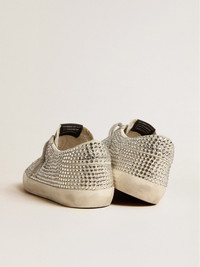 A timeless icon yet one that’s constantly evolving. At Golden, we love taking our classics and reworking them all the time, always from a new angle. With a white nubuck upper highlighted with silver Swarovski crystals, these Super-Star feature an ice-gray suede star and an ice-gray suede heel tab covered in Swarovski crystals. The white nubuck tongue and ice-gray laces add the finishing touch. DETAILS Item No. GWF00174.F006318.10273 - White nubuck upper with silver Swarovski crystals - Ice-gray suede star - Ice-gray suede heel tab with silver-colored Swarovski crystals - White nubuck tongue - Ice-gray laces - Vintage finish - Upper: 100% cow leather - Lining: 33% cotton, 30% cow leather, 17% polyurethane, 15% polyester, 5% viscose - Sole: 100% rubber - Handmade - Made in Italy