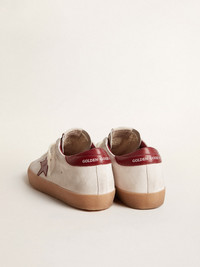 Super-Star in white suede with burgundy leather star and heel tab
