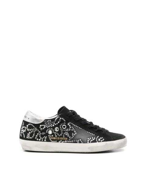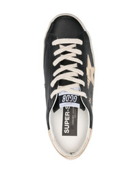 Super-Star sneakers Highlights - Black - Calf leather - Distressed effect - Front lace-up fastening - Metallic effect panels - Contrasting branded heel counter - Side metal eyelet detailing - Logo print to the side - Star patch detail to the side - Logo patch at the tongue - Round toe - Branded leather insole - French terry lining - Flat rubber sole Made in Italy Composition Leather 100% SIZE & FIT Measurement HEEL 0.98 in(2.5 cm) Sole height 0.78 in(2 cm)